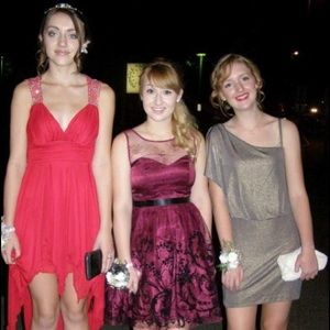 This dress is loose fitting through the upper half, giving a comfortable draped feel. The right shoulder has a tank top sleeve with draped fabric, while the left shoulder has a skinny strap. The skirt is meant to hug the hips, though with me it was still loose enough to walk and dance in easily. Overall, this is a very comfortable dress, that has just enough shimmer to make anyone look elegant and absolutely gorgeous. You can see in the photos that it shifts in colors based on the light.
