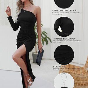 Sarin Mathews Womens One Shoulder Long Sleeve Cocktail Dresses Sexy Bodycon Ruched Wrap Split Party Formal Long Dress