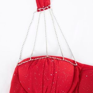 One Shoulder Rhinestone Ruched Bust Bodycon Dress