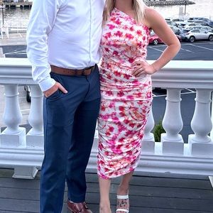 Extremely flattering, very stretchy, and non-see-through! Wore it once to a wedding and it was perfect.