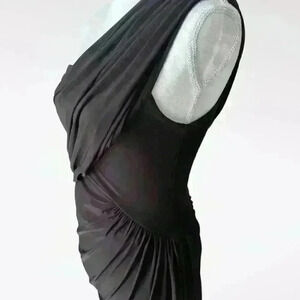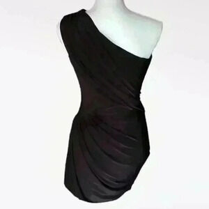 One Shoulder Ruched Black Fitted Mini Dress Size Medium
