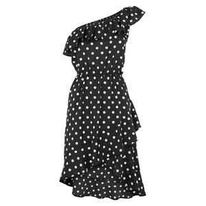 Stay on trend with polka dot one shoulder frill dress. Featuring a one shoulder strap with frill detailing, a wrap over skirt, and an elastic waistband and neckline