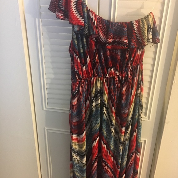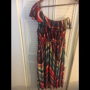 One Shoulder red, white, and blue ruffle dress. Great for summer picnics or a day at the beach