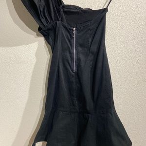 Your perfect LBD! Cute one shoulder, ruffle mini with back, silver zipper.