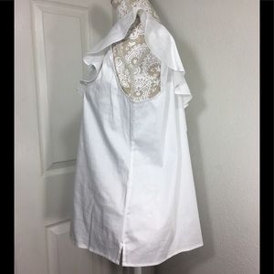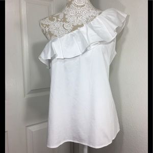 A summery top cut creates a romantic vibe with a ruffled one-shoulder neckline