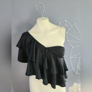 Express - size 8 - black ruffled, one shoulder crop top - hidden side zip. Great condition