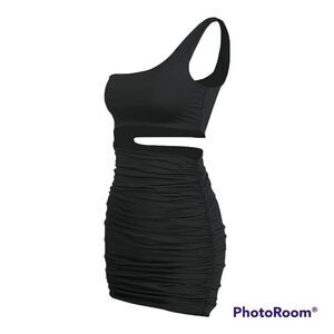 One Shoulder Sleeveless Bodycon Mini Dress Cutout Ruched Slim Fit Size S