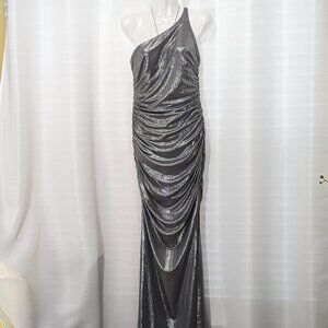 One Shoulder Social Couture Maxi Dress silver Sequin Formal Size 11/12 Nwt.