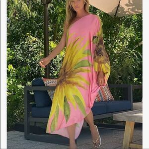 One Shoulder Floral Print Asymmetrical Flowy Kaftan Cover up