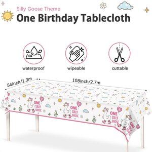 NWT "One Silly Goose" Birthday Themed Tablecloth and Paper Plates