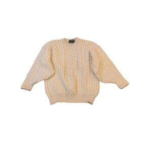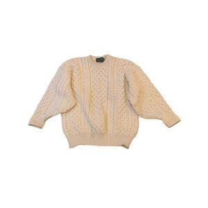 One Size British Wool Adult Unisex Cream Cable Knit 100% Wool