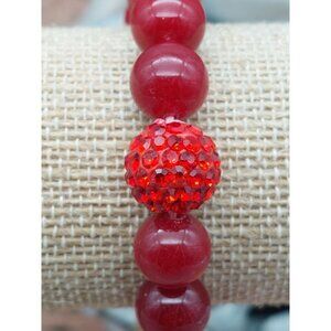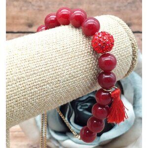 One Size Red Glass Bead & Gold Tone Slide Bracelet Tassel Shamballa MINT