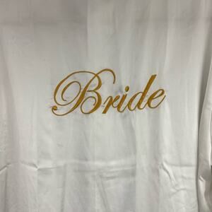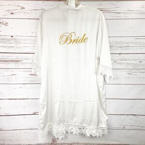 One Size White Gold Bride Embroidered Silky Satin Floral Lace Trim Robe