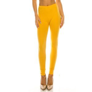 Reg One Size Women's Comfort Stretch Soft Solid Print 3" High Waist Band Active Leggings YELLOW