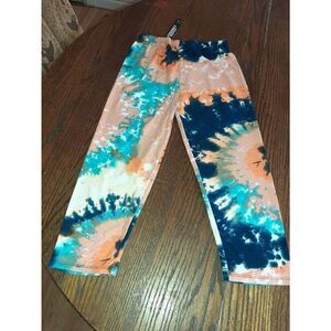 New With Tags Attached Women's One Size Small-Large Size 2/12 Legging Depot Blue, Orange, and White Tie-Dye Buttery Soft Capri Leggings- Perfect for Casual Wear, Workout, Gym, Running, or Pair Up with Your Favorite Heels!