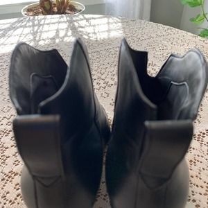 Condition: Pre-owned. These beautiful booties are in excellent condition. There are no marks on the uppers. There is a tiny scuff on the inside on the left heel. There is also a small "dent" on inside left heel. These marks are all unnoticeable while being worn.
