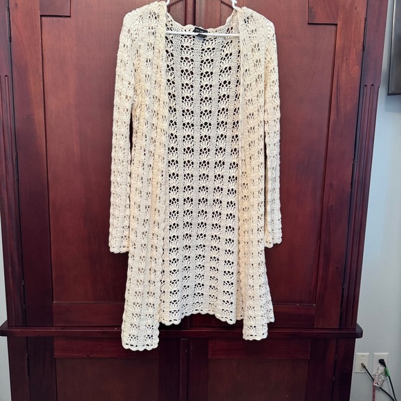 Stylish cream crochet cardigan. Ideal for layering. Great for year round wear.