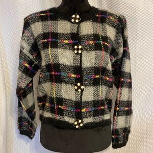 One Step Up Multicolor Checkered Long Sleeve Cardigan Sweater Size M