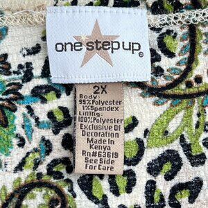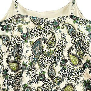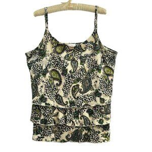 One Step Up Womens 2X Sleeveless Paisley Print Top Green Paisley Spaghetti Strap
