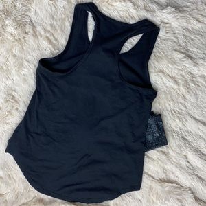 Black, flowy racerback with “One strong Mother” on the front in red and white letters.