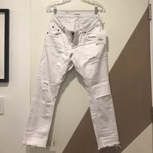 Slouchy/boyfriend fit, slightly distressed. Never been worn - new with tags. Only selling because they don't fit me right!