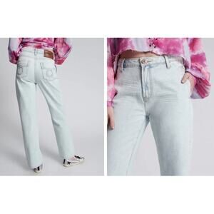 One Teaspoon 24 Jeans Ryders High Waist Wide Leg Stretch Denim Light Wash NEW