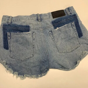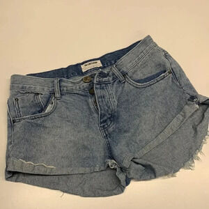 One Teaspoon Bandits Denim Jean Shorts Button Fly Twisted Distressed Blue 28