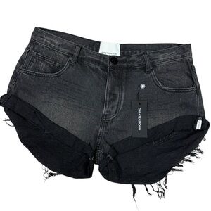 One Teaspoon Bandits Low Waist Distressed Denim Shorts Black Fade Size 31 NWT