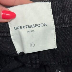 One Teaspoon black shorts, Dble Bass Bandits, faded black denim shorts, size 31 low rise shorts, distressed denim cutoffs, One Teaspoon Bandit style, festival outfit shorts, raw hem jean shorts, slouchy denim fit, edgy streetwear shorts, black summer shorts, AU13 US9 Bandits, signature twisted hem shorts, grunge denim look, women’s casual black shorts