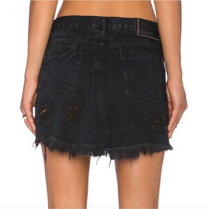 One Teaspoon Black Denim Junkyard Destroyed Mini Skirt Size 25