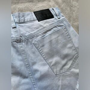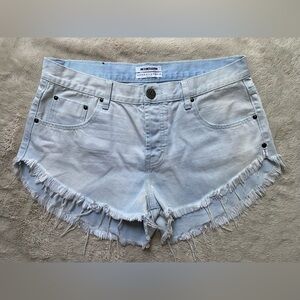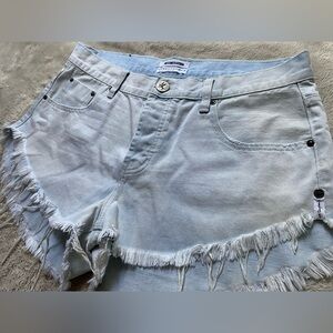 EUC light was button fly denim shorts by One Teaspoon. Higher leg rise in the front but longer in the back for more coverage. So flattering! ๐