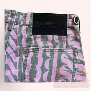One Teaspoon Cargo Motion Jeans Static CEO Print Pink & Army Green NWT Size 26