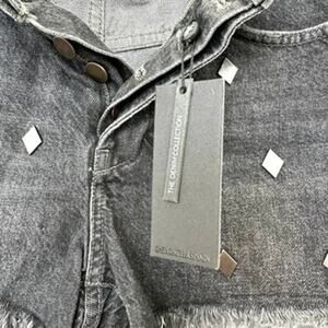 Features: High-waisted cut, frayed hem, silver diamond-shaped stud embellishments, classic 5-pocket style, edgy and unique look