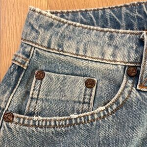 One Teaspoon Distressed Cuffed Blue Denim Shorty Shorts 0067