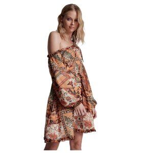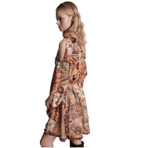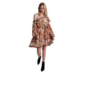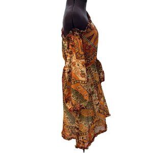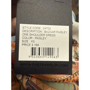 Step into elegance with the One Teaspoon Bazaar Paisley Dress. This one-shoulder piece combines a flattering silhouette with a vibrant fall color palette that effortlessly blends orange and sage tones. Its unique design and comfortable fit make it an essential addition to your wardrobe for capturing attention. Uber Feminine Dress! Runs oversized; Multiple sizes available XS/XXS (comfortably fits S-M).