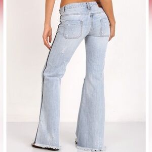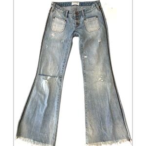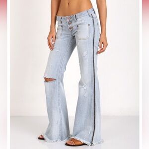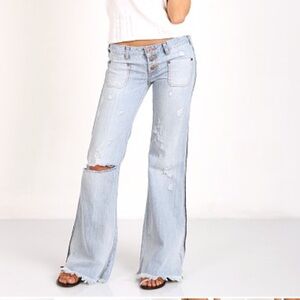 Le cats are a low waist fitted jean with a wide leg and raw hemline. Front patch pocketFabric: 100% Cotton