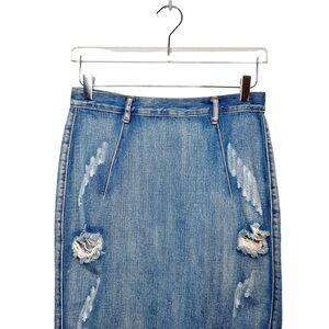 One Teaspoon Free Love Distressed Women’s Denim 100% Cotton Pencil Skirt Sz 28