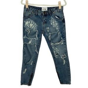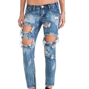One Teaspoon Freebird Brave Distressed Zippered Skinny Jeans