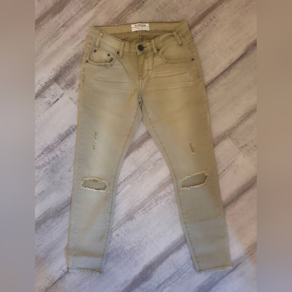 Chic beige low rise khaki jeans with ankle cut. Cropped style. Subtle distressed accents. NWT!! NEVER WORN!! Accepting "reasonable" offers!!
