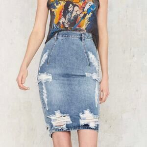 One Teaspoon Freelove Distressed Denim Pencil Skirt