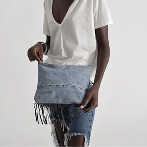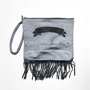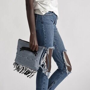 The Fringe Clutch is designed exclusively for the One Teaspoon Collection designed from a darkie denim with a original print and fringing.