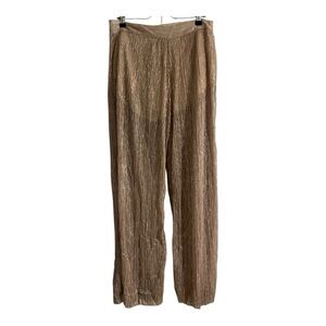 Elegant wide-leg pants. Shimmering gold fabric. Perfect for a chic look.