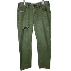 One Teaspoon Green Distressed Whiskering Straight Leg Women's Jeans 25 Distressed, Button Zip Closure, Straight Leg. In Great Condition Measurements (Flat) Waist 15” Rise 9” Inseam 27" Bin 7052