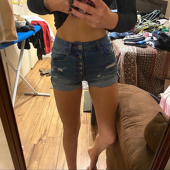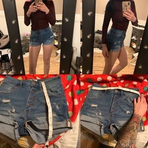 Sz 25. These were too big on me. They’re very very stretchy and high waisted. Only worn a few times this summer. these would fit sometime between a 25&26 easily! My loss is your gain! These were VERY expensive shorts 💔 bought from free people. The last photos wouldn’t post so I made a collage. You can zoom In to see measurements! Would trade for exact same pair in size 23 or 24 in same condition.