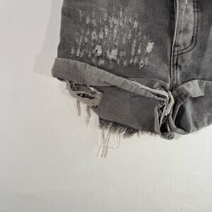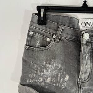 One Teaspoon Hawks Gray Black Distressed High Rise Relaxed Denim Shorts 26