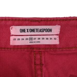 One Teaspoon High Waist Awesome Baggies Red Distressed Ripped Jeans 28x28 Sz 26