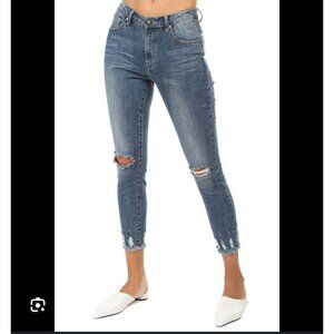 One Teaspoon Jean Women 24 Blue Denim Distressed High Waist Freebirds II Skinny