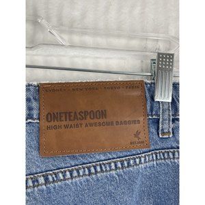One Teaspoon High Waist Awesome Baggies relaxed leg medium wash jeans.