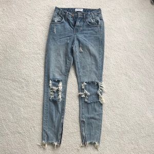 Distressed One Teaspoon Jeans! Great condition only worn a couple times, nice wash, and zipper details by the ankles