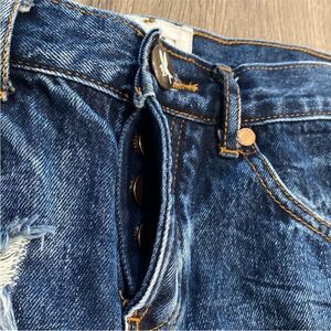 One Teaspoon Junkyard Distressed Blue Jean Skirt Size 25. Excellent condition! 100% non-stretch cotton. Front button fly closure. Distressed details. See pictures for measurements. Buttons are a bit hard to button. Needs to be broken in.